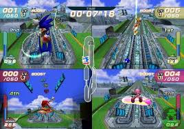 - modo corrida, tradicional, você escolhe o cenário e o personagem e vai correr na ruas de "Sonic-lândia" (rsrsrsrsrsrsrs!!!) e tenta chegar em primeiro lugar;